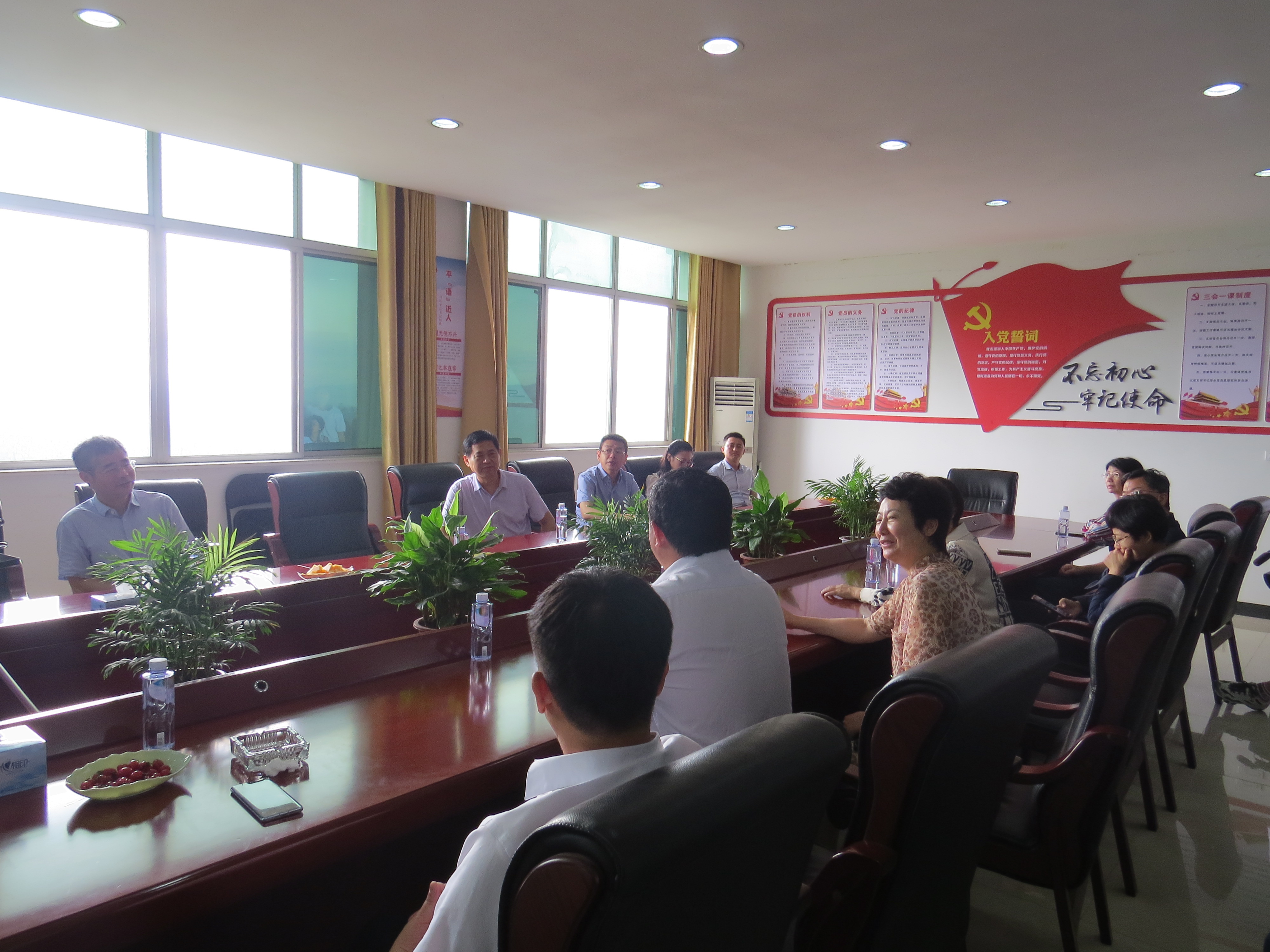 At 10 o 'clock in the morning, an investigation and research meeting was held in the meeting room of Baotai Group. During the meeting, they watched the propaganda video of our company, Liu Weiqi, deputy director of the United Front Work Department of The Provincial Party Committee, learned about the influence of the group in the local area from the local party cadres and praised the chairman Peng Baotai's spirit of never forgetting the root and never forgetting the source of wealth.